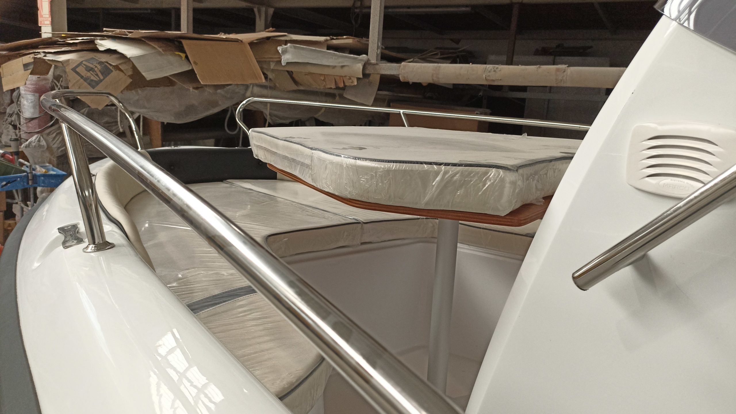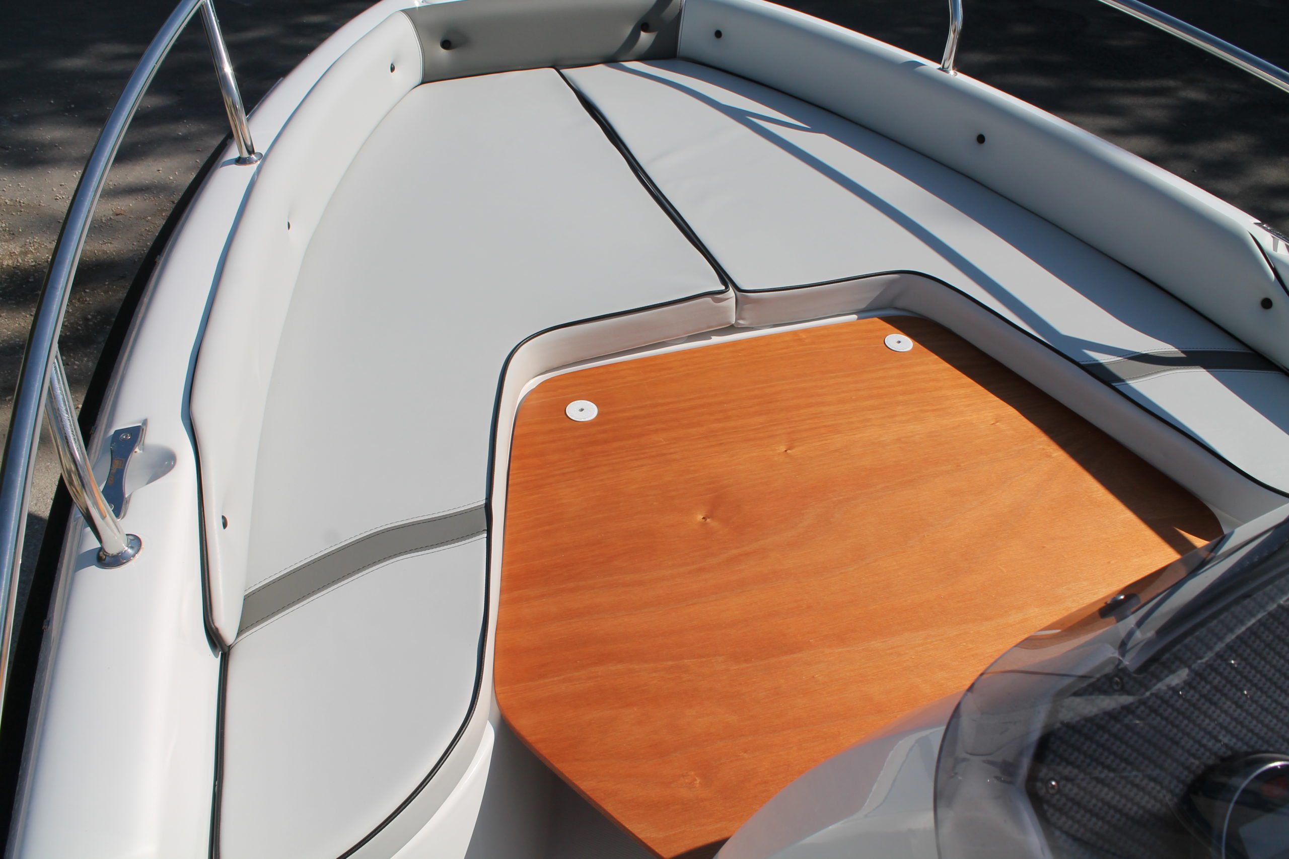 Mose 17 in soli 5,50mt di lunghezza e 2,05mt di larghezza non sfugge a questa logica di sfruttamento degli spazi in modo ottimale e riesce, come le più grandi, ad accogliere dotazioni da GRANDE! Sono presenti il doppio prendisole di prua e poppa, il tavolino pic nic, il serbatoio acqua dolce e benzina con imbarco esterno(optional), la scaletta di risalita e le spiaggette integrate nella stampata di coperta per una fruibilità ai massimi livelli, da barca di livello superiore. Nella dotazione standard potrete inoltre scegliere i colori non solo della imbarcazione ma anche della tappezzeria, in questo modo realizzerete la vostra Open Mose 17 un esemplare unico!
